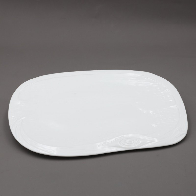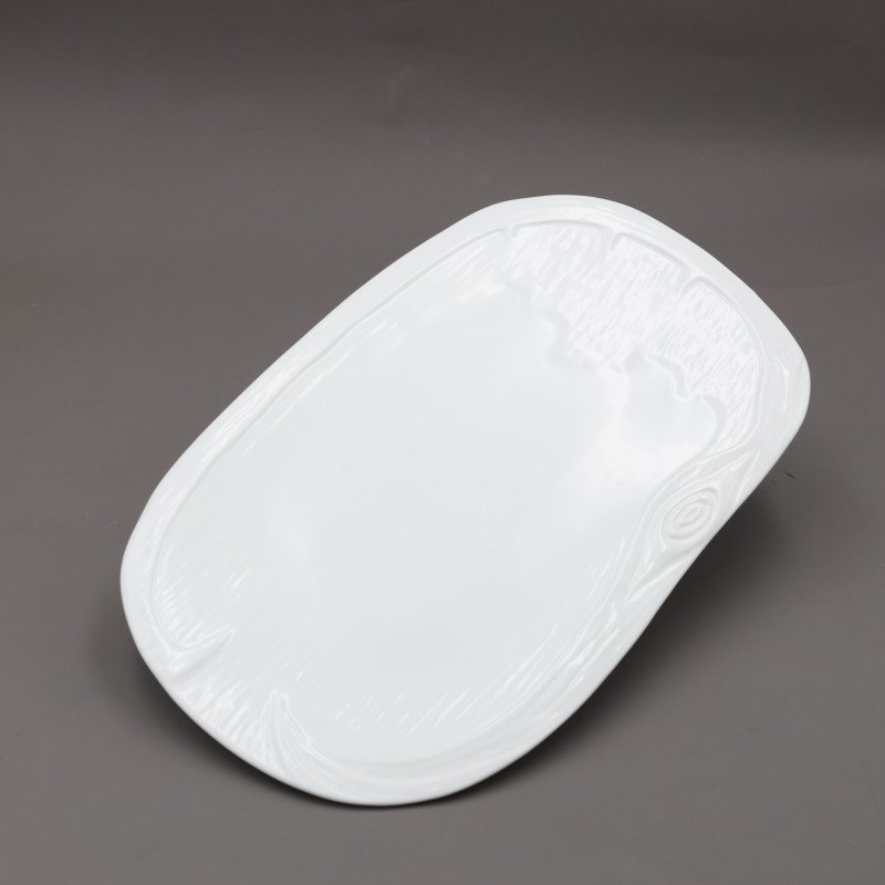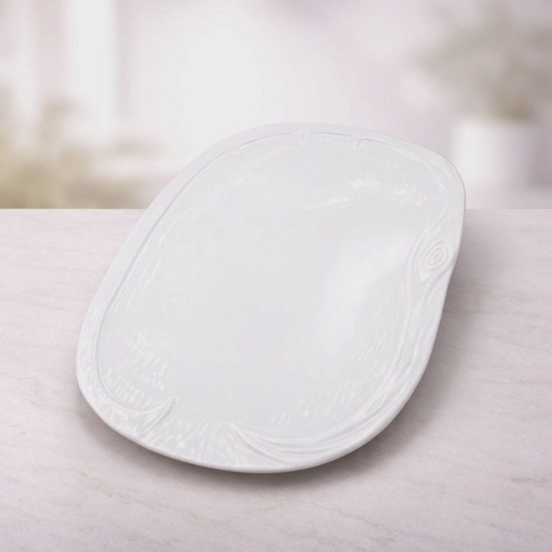 ✅ صحن تقديم بورسلان بتصميم شبه مستطيل طول 35×22 سم لون أبيض.