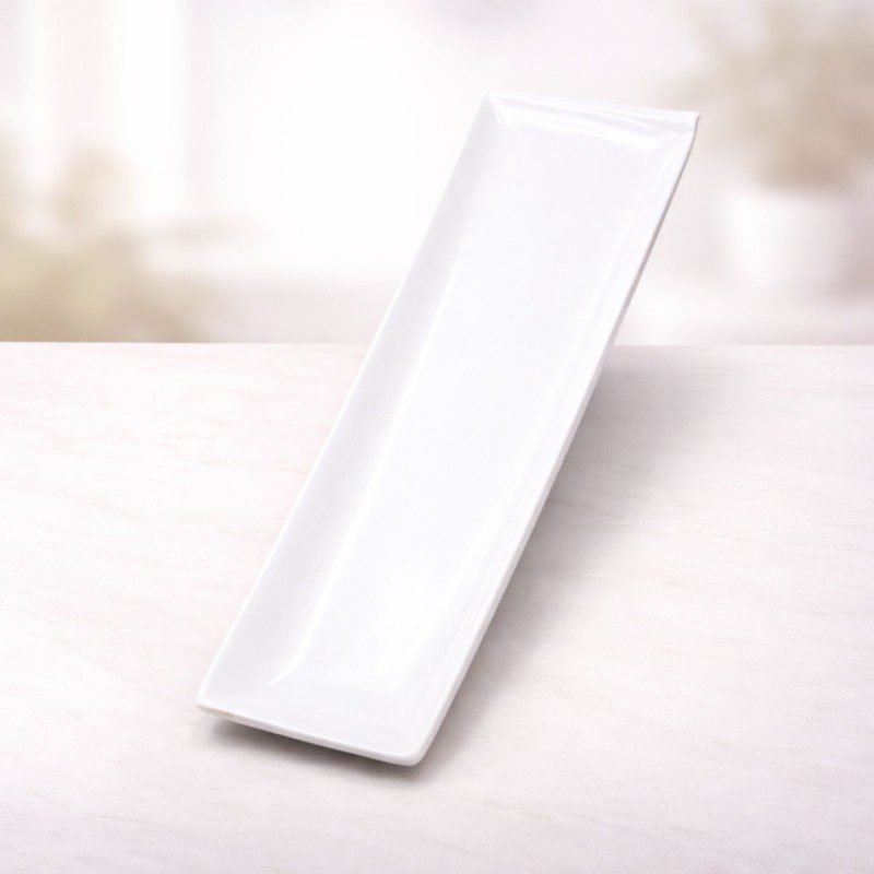 ✅ صحن تقديم بورسلان بتصميم شبه مستطيل طول 30×10 سم لون أبيض.