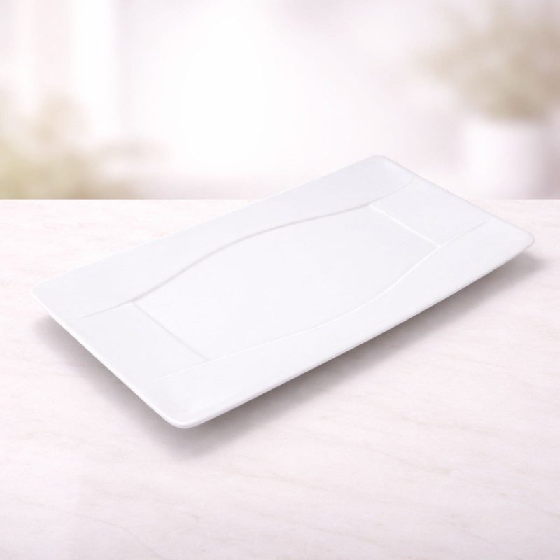 ✅ صحن تقديم بورسلان بتصميم شبه مستطيل طول 36×20 سم لون أبيض