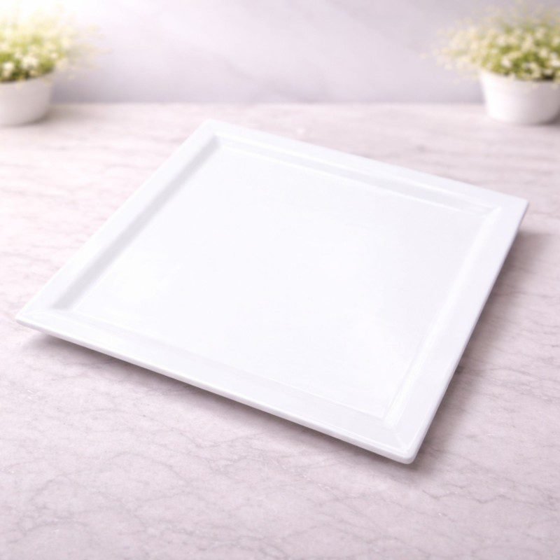 ✅ صحن تقديم بورسلان بتصميم مربع طول 28×28سم لون أبيض.