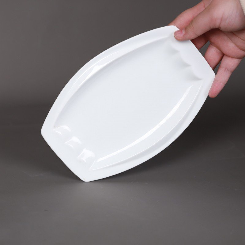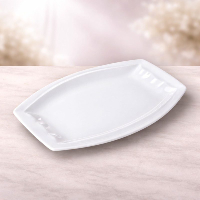 ✅ صحن تقديم طعام بورسلان بتصميم على شكل شبه مستطيل حجم متوسط.