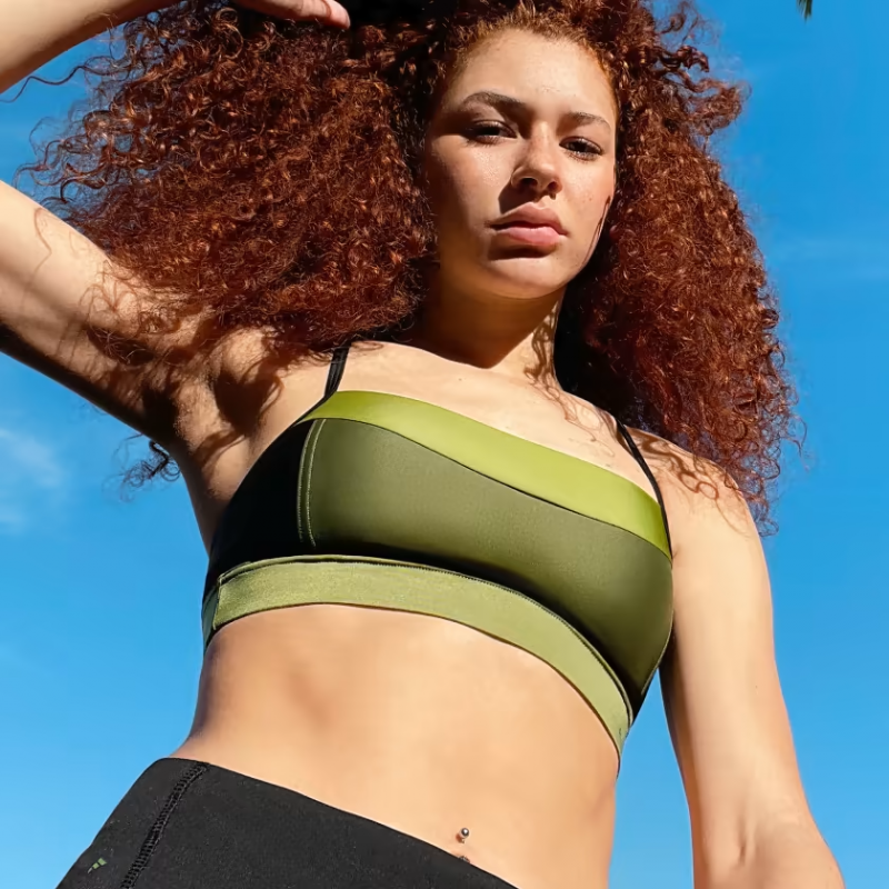A SPORTY BIKINI TOP MADE WITH RECYCLED MATERIALS.