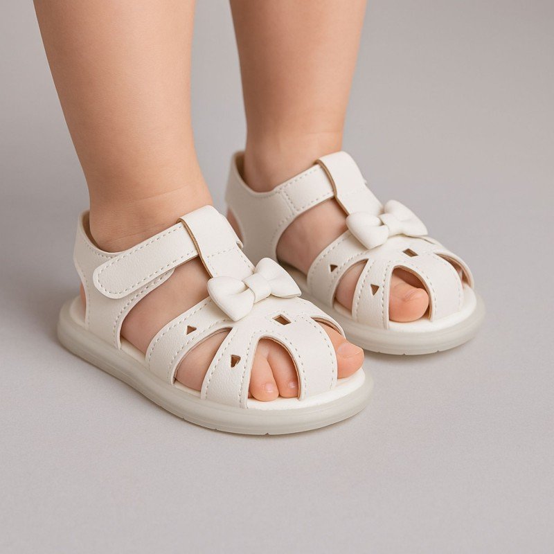 صندل اطفال بناتي بتصميم ببيونه لون ابيض