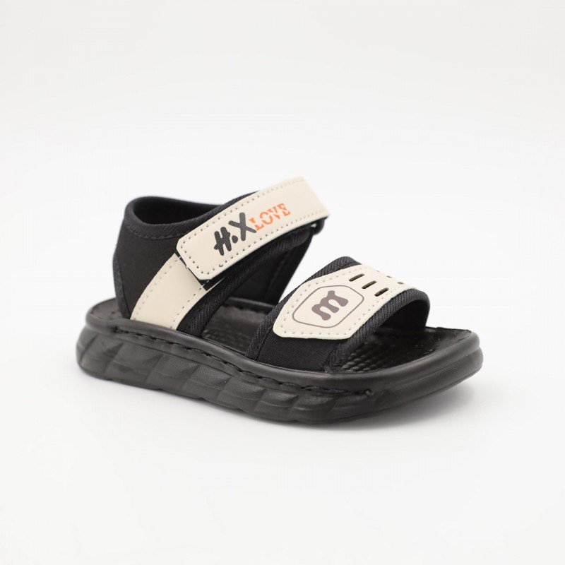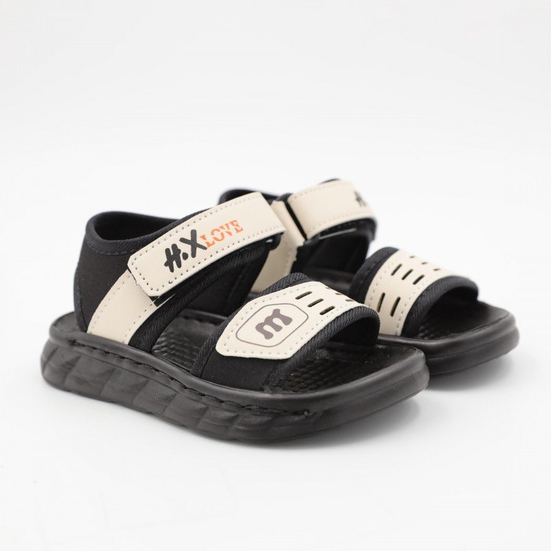 صندل اطفال ولادي مع لاصق لون اسود وبيج