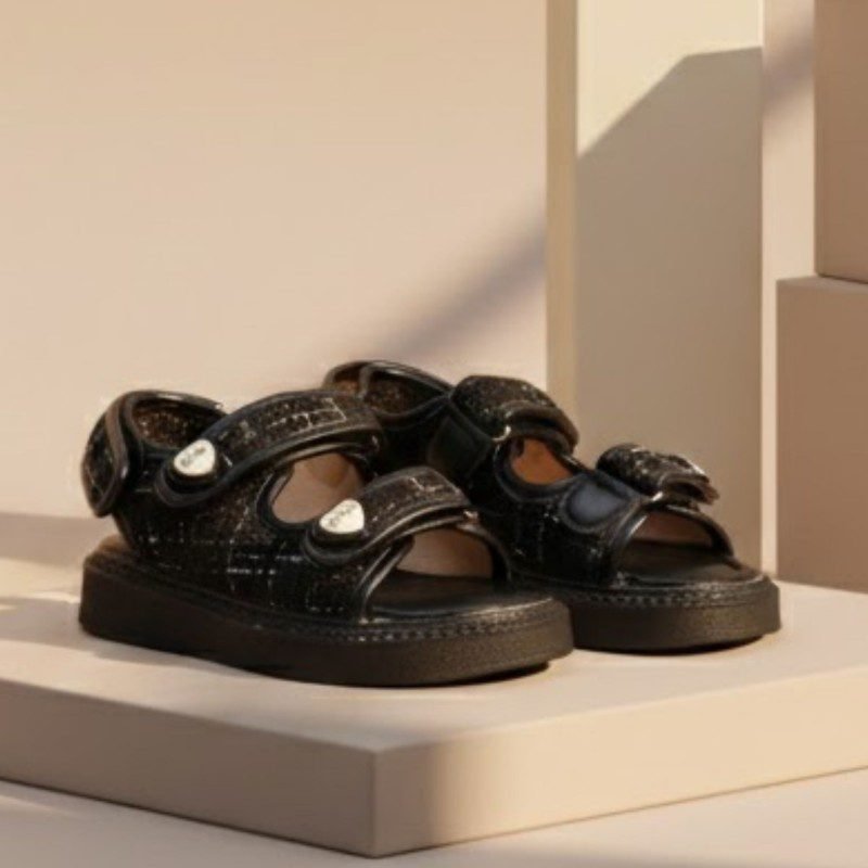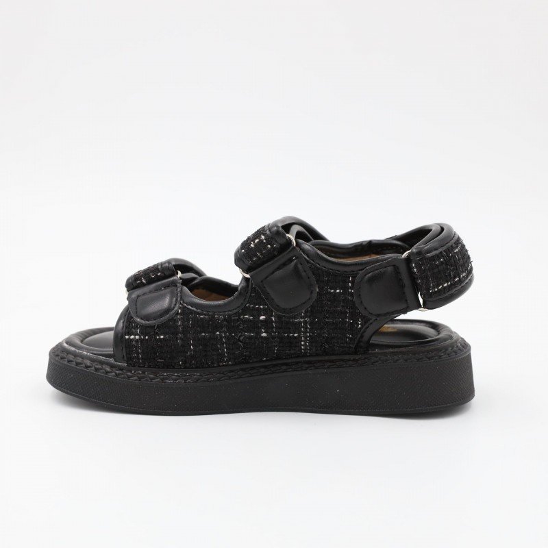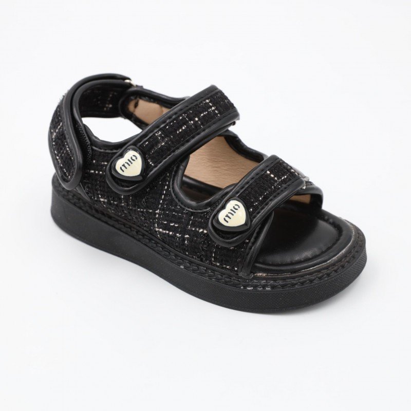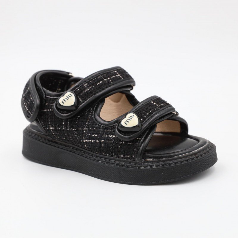 صندل بناتي بشريط لاصق للاطفال لون أسود