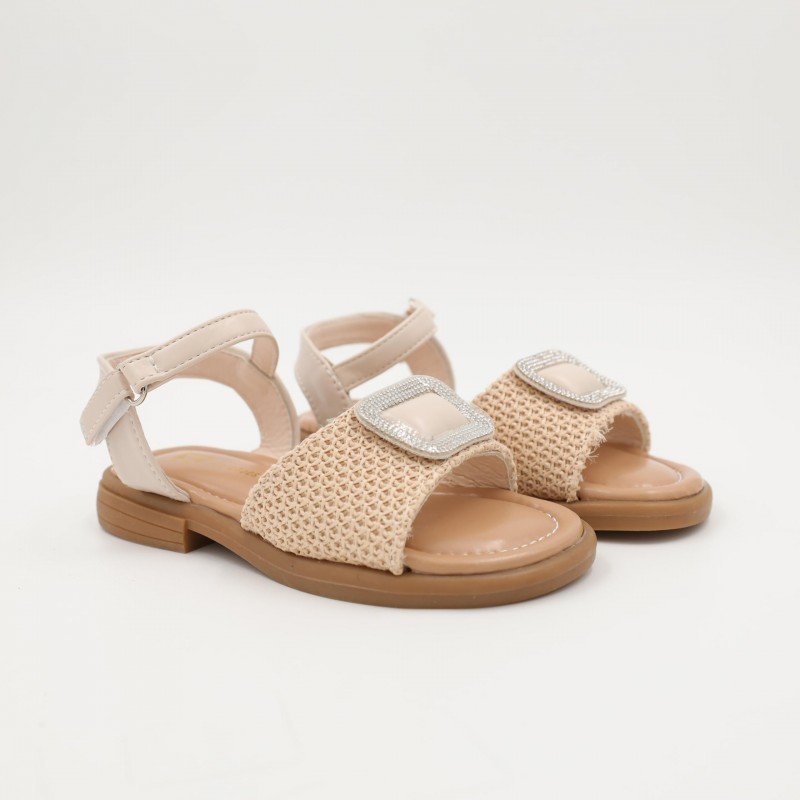 صندل بناتي مع حزام لون بيج