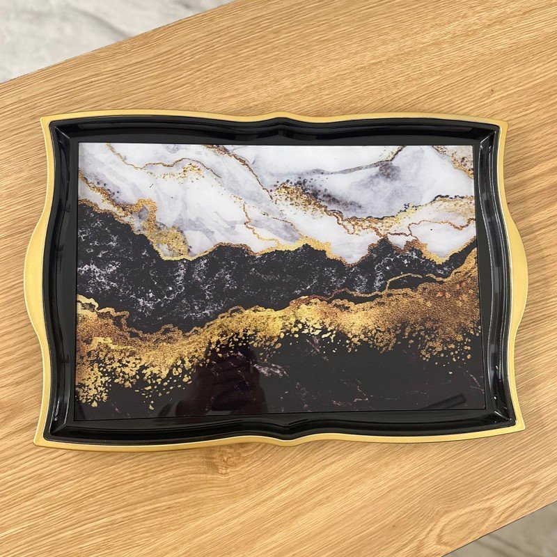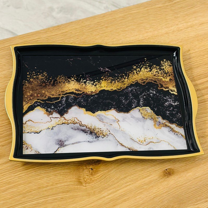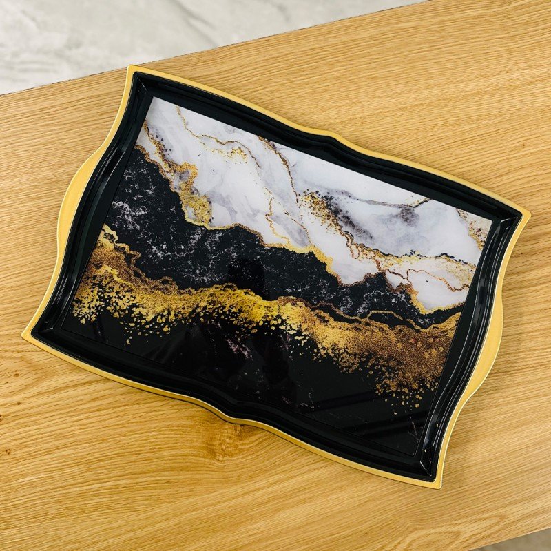 صينية بلاستيك وزجاج ماربل ذهبي