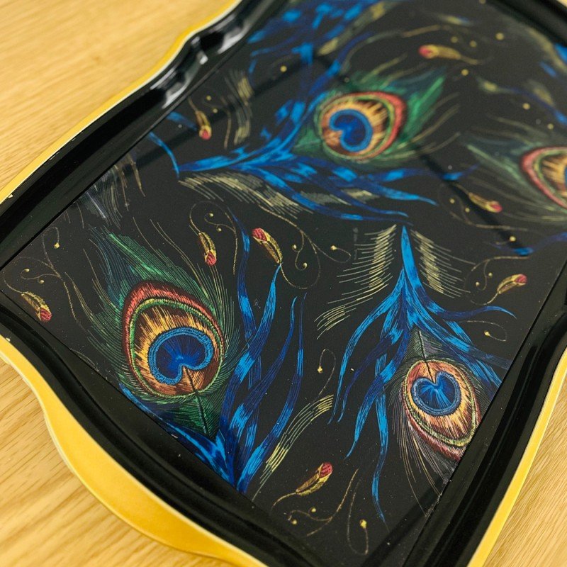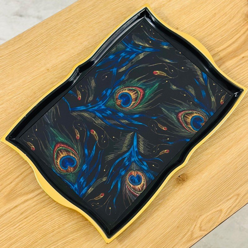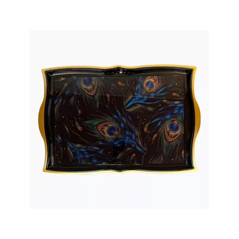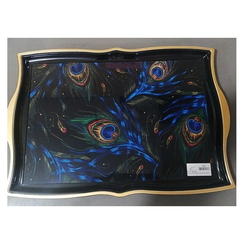 صينية تقديم بلاستيك وزجاج بتصميم طاووس حجم 47×32سم
