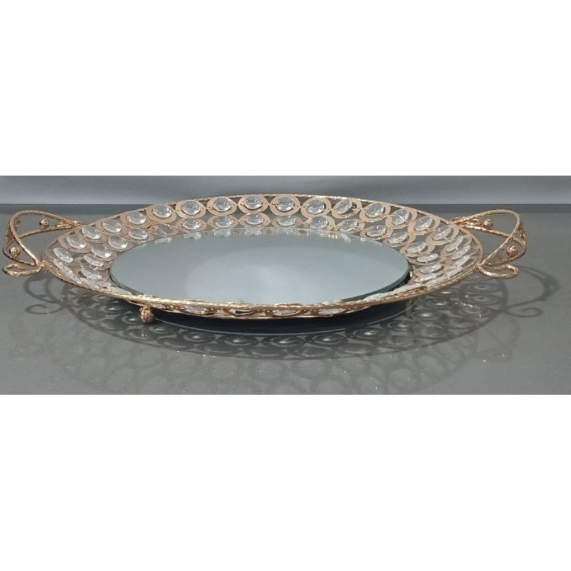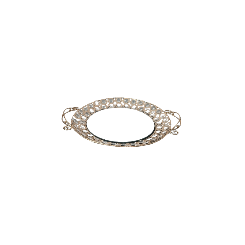 صينية ذهبي مراي مع كرستالاتأضف لمسة من الفخامة والرفاهية إلى مائدتك مع هذه الصينية الرائعة المصممة من المرايا اللامعة، والمزينة بأحجار الكريستال المتألقة. إنها قطعة ديكورية عملية تجمع بين الأناقة والوظيفة، مما يجعلها الخيار المثالي لعرض الطعام أو لاستخدامها كقطعة زخرفية في أي مكان من منزلك.
