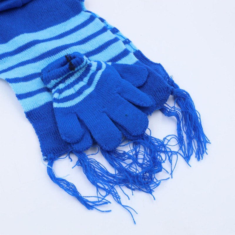 طاقية للأطفال مع لفحة وكفوف لون أزرق