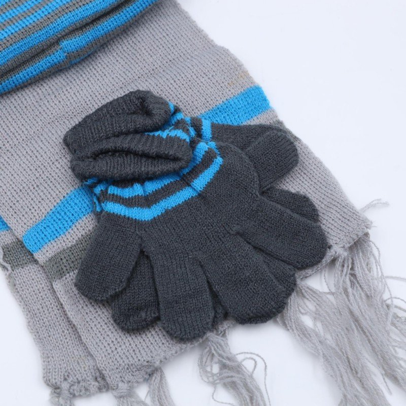 طقم شتوي متكامل للأطفال يضم طاقية، لفحة، وكفوف، مصنوع من نسيج محبوك ناعم يساعد على الحفاظ على الدفء في الأيام الباردة. يتميز بلون سكني عملي مع تفاصيل باللون الأزرق وتصميم كرتوني جذاب يناسب أذواق الأطفال. الطاقية مريحة وتثبت بشكل جيد على الرأس، واللفحة بطول مناسب لتدفئة الرقبة، بينما توفر الكفوف حماية ودفئًا لليدين أثناء الخروج أو اللعب. خيار عملي للاستخدام اليومي خلال فصل الشتاء.