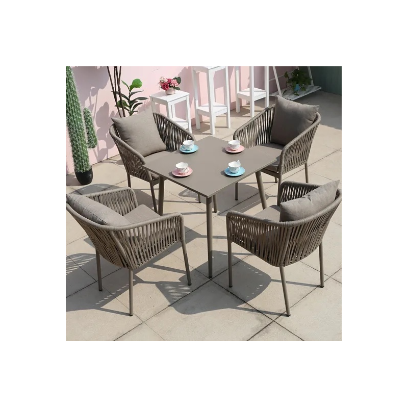 مناسبة للاستخدام الخارجي: الطاولة والكراسي مصممة لتكون مقاومة للعوامل الجوية مثل أشعة الشمس والمطر، مما يجعلها مثالية للاستخدام في الأماكن الخارجية.