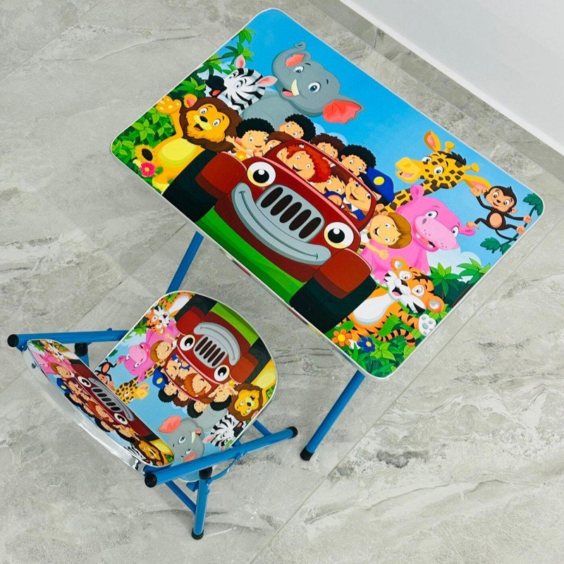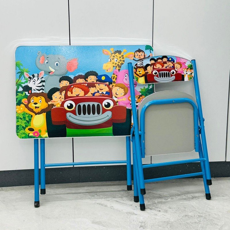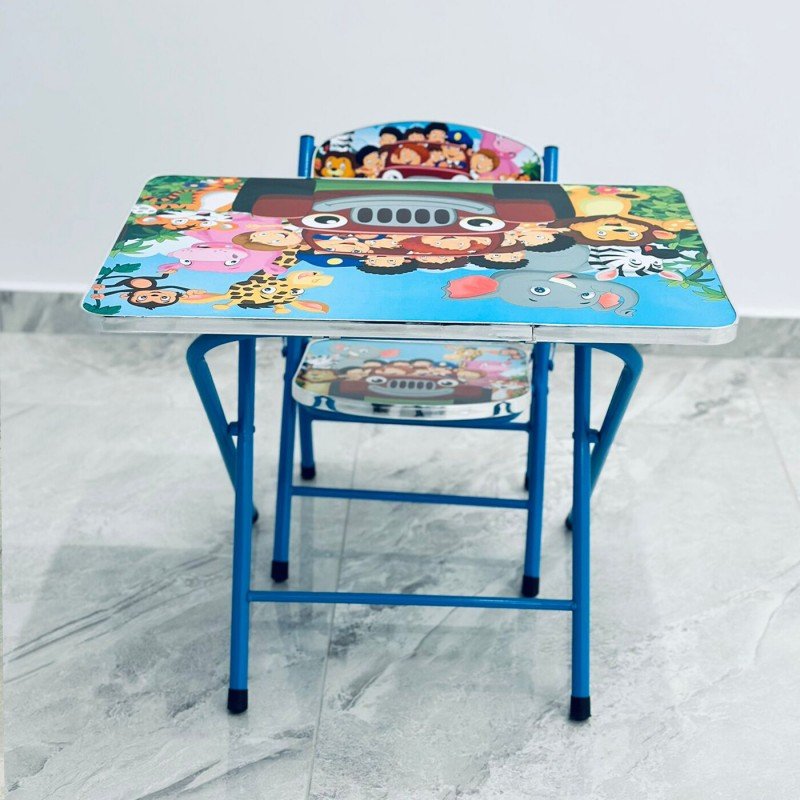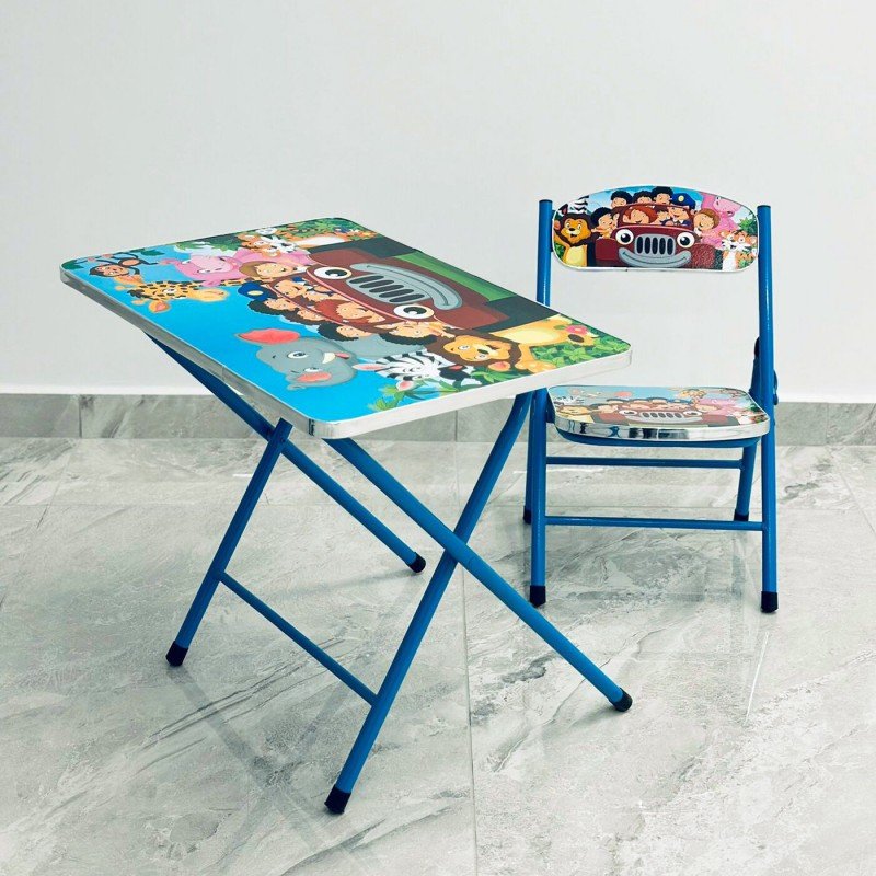 ✅ طاولة خشب معدنية مع كرسي قابلة للطي للدراسة واللعب خاصة بالأطفال.