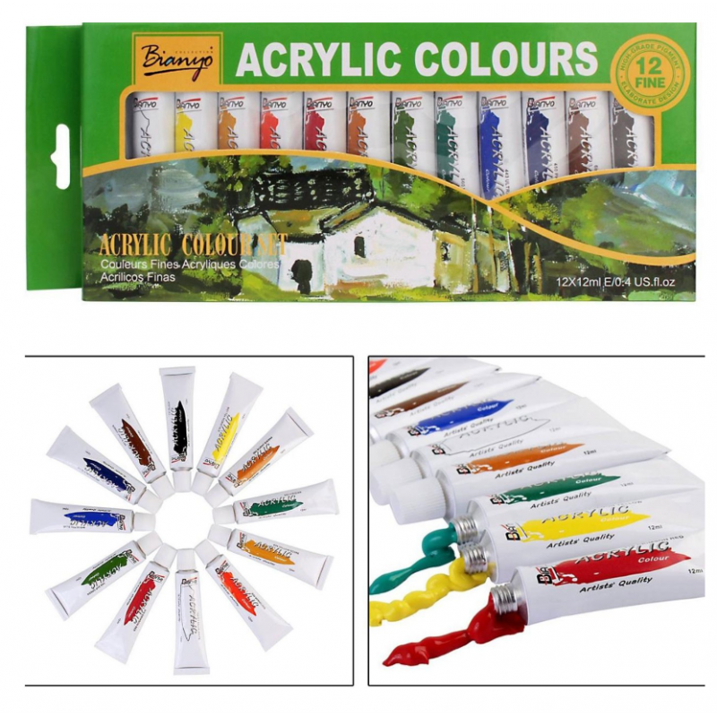 ✅ طقم ألوان أكريلك مكون من 12 لون ✅ الحجم: 12 مل كل لون.