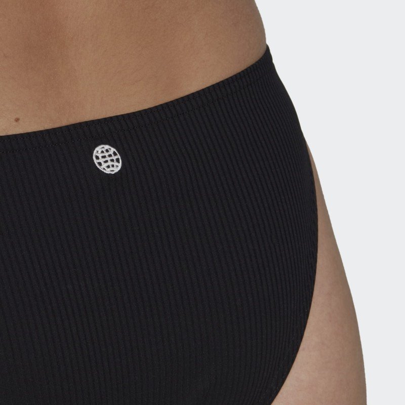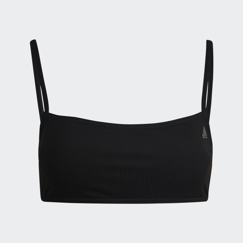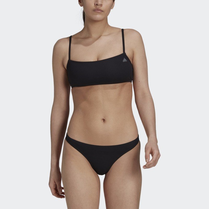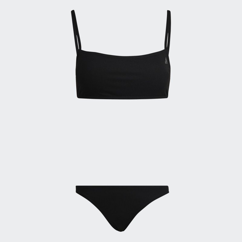 The little black dress never goes out of style. Inspired by the timeless classic, this adidas bikini brings simplicity and elegance to a day at the beach or pool. Ribbed fabric is soft and comfortable. The top has thin shoulder straps and a built-in bra for medium support. Removable pads let you choose your level of coverage. The bikini bottoms have a mid-rise waist. Made with a series of recycled materials, and at least 60% recycled content, this product represents just one of our solutions to help end plastic waste.