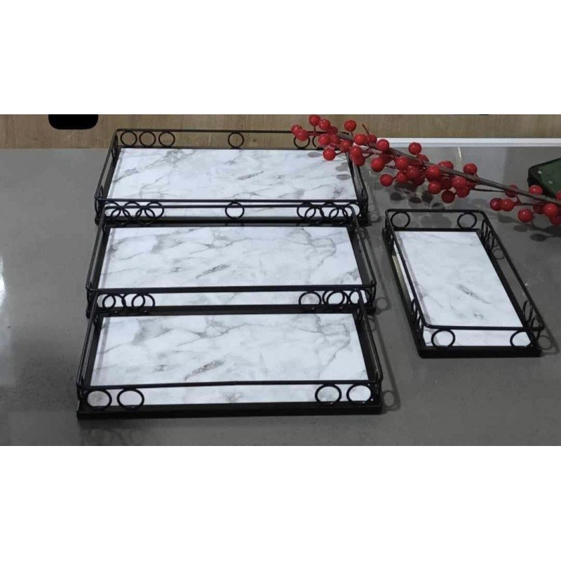 أربعة صواني بأحجام مختلفة: الطقم يتضمن أربعة صواني بأحجام متنوعة لتلبية جميع احتياجاتك. من تقديم الوجبات الصغيرة إلى الوجبات الكبيرة، يمكنك اختيار الحجم المثالي لكل مناسبة.