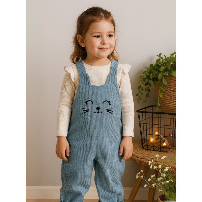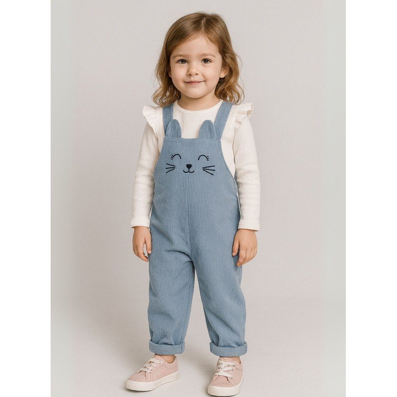 طقم افرهول مع بلوزة كم بناتي لون أزرق فاتح وأبيض
