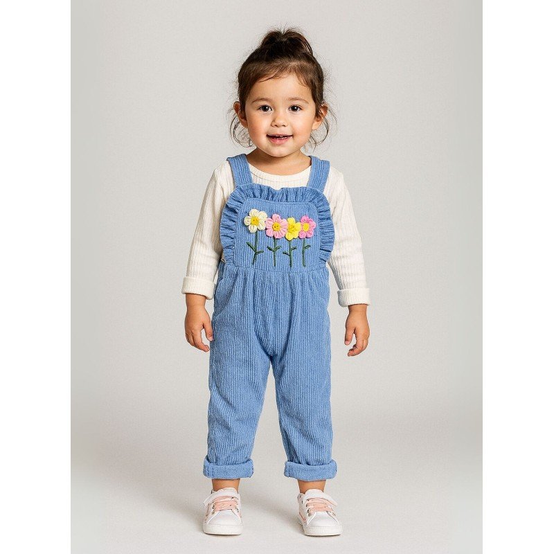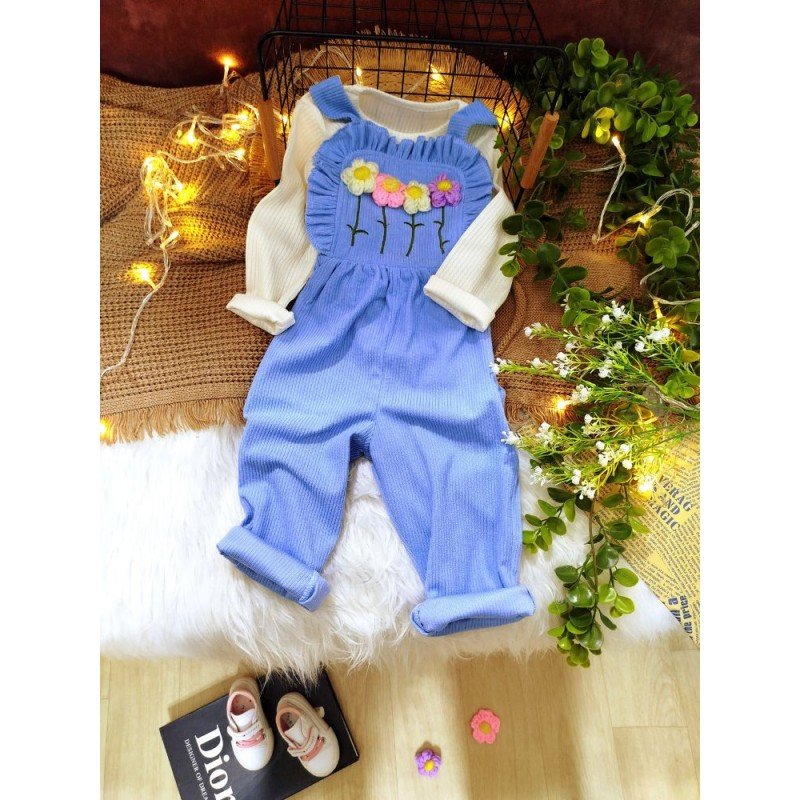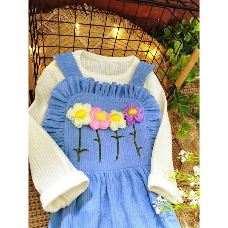 طقم افرهول مع بلوزة كم بناتي لون أزرق وأبيض