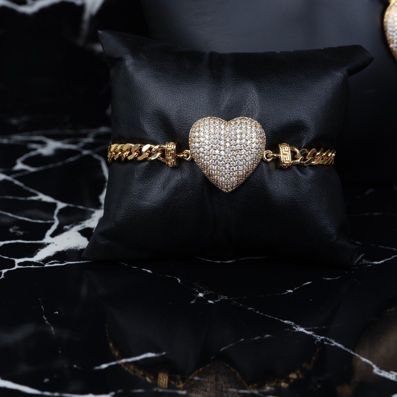 ✅ طقم إكسسوارات زركون 4 قطع بتصميم قلب لون ذهبي حجم 7مكفول سنتين