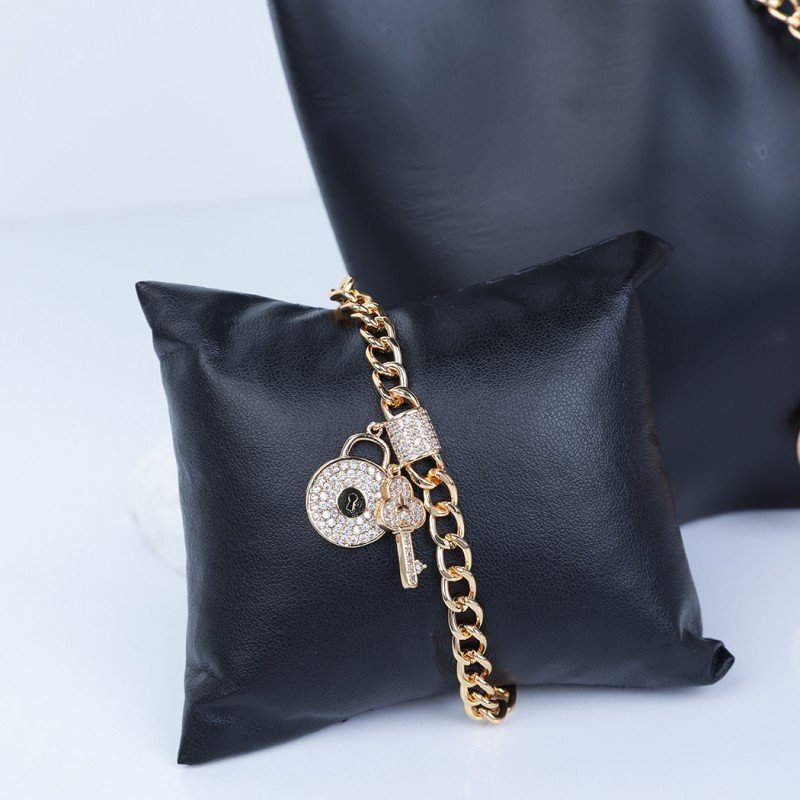 ✅ طقم إكسسوارات 3 قطع لون ذهبي بتصميم قفل ومفتاح حجم 8