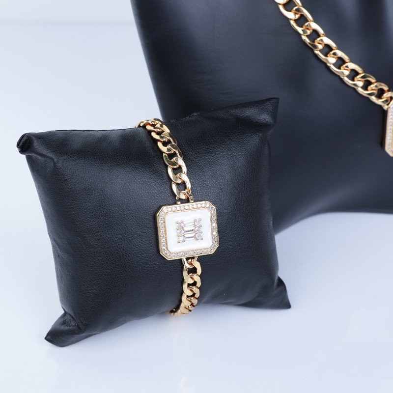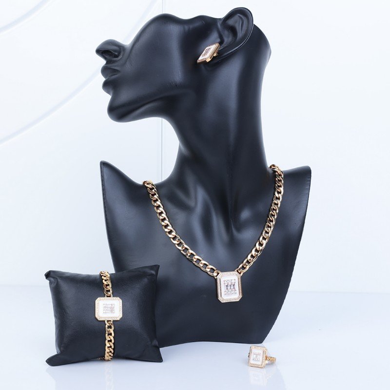✅ التصميم: يتكون الطقم من 4 قطع مصممة بتفاصيل دقيقة على شكل جنزير، مما يمنحه طابعًا عصريًا وفاخرًا. تتميز القطع بتداخل اللون الذهبي مع الأبيض بشكل يعكس الجمال البسيط والفخم في آن واحد.