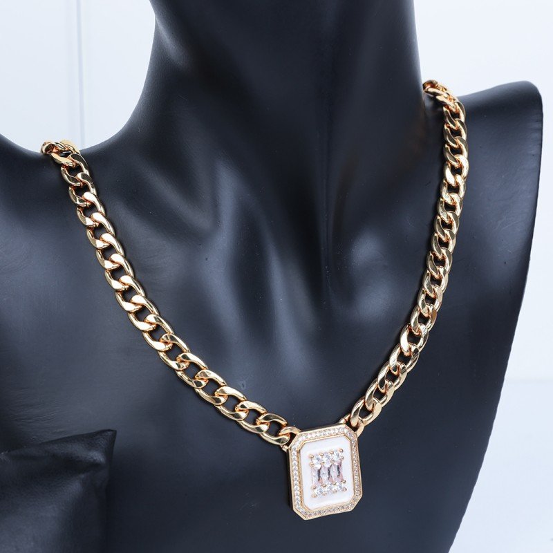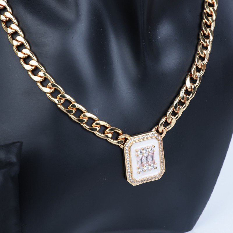 ✅ طقم إكسسوارات 4 قطع بتصميم جنزير لون ذهبي وأبيض