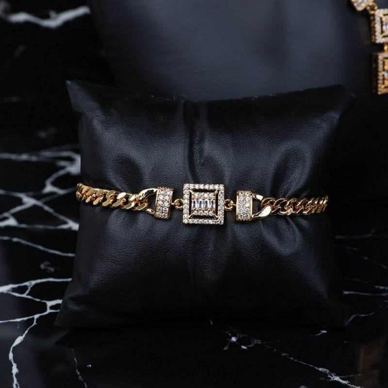 ✅ طقم إكسسوارات 4 قطع بتصميم جنزير وأحجار زركون لون ذهبي حجم 7