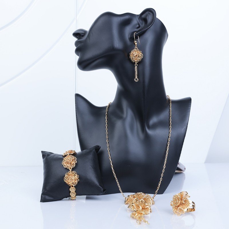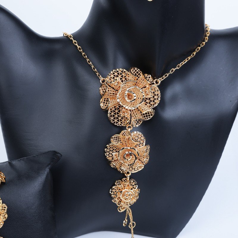 ✅ طقم إكسسوارات 4 قطع بتصميم وردة لون ذهبي