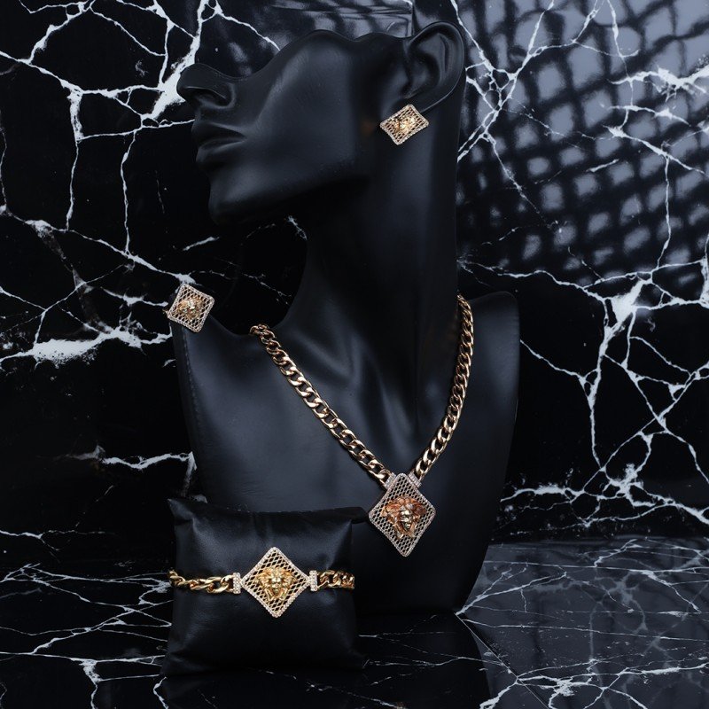 ✅ طقم أكسسوارات 4 قطع لون ذهبي بتصميم فيرزاتشي حجم 7