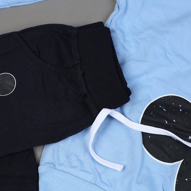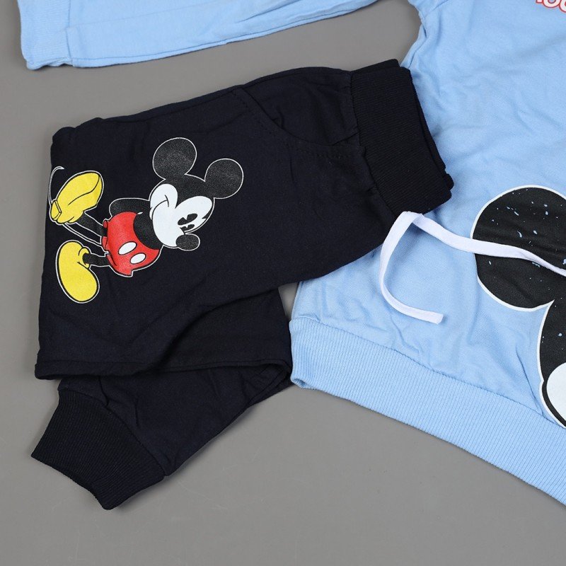 طقم (بلوزة كم بطاقية مع بنطلون) بتصميم رسوم ميكي ماوس للأطفال