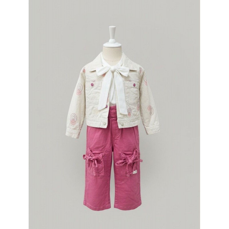 طقم بناتي جاكيت وبنطلون لون بيج وفوشي