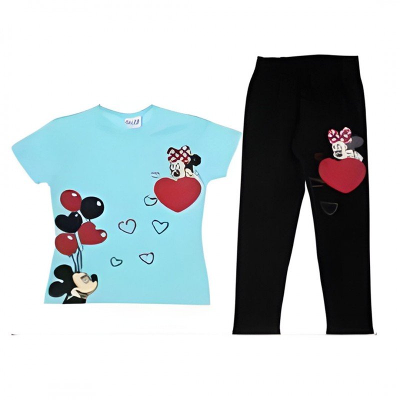 ✅طقم بناتي صيفي (تيشيرت وبنطلون) بطباعة رسوم ميكي ماوس للأطفال
