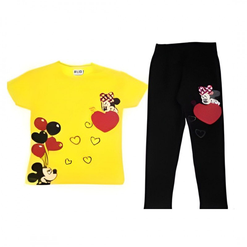 ✅طقم بناتي صيفي (تيشيرت وبنطلون) بطباعة رسوم ميكي ماوس للأطفال