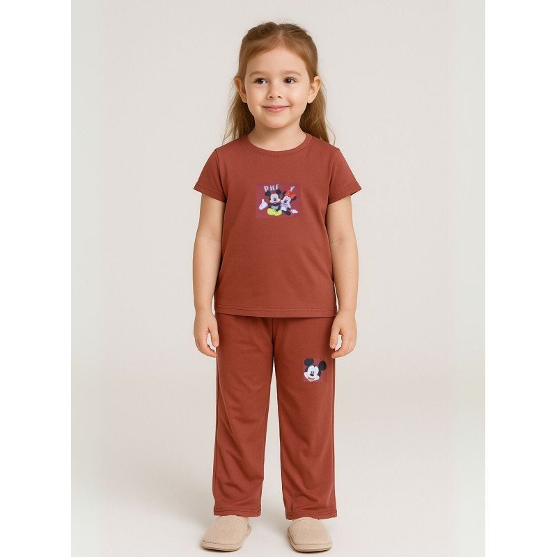 طقم بناتي قطعتين لون بني بنطلون + تيشيرت
