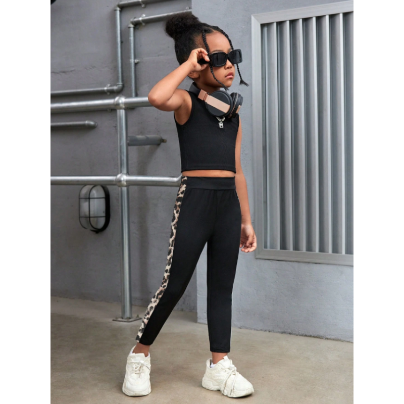 طقم بنطال تايد للام وبنتها بنقشة النمر لون اسود