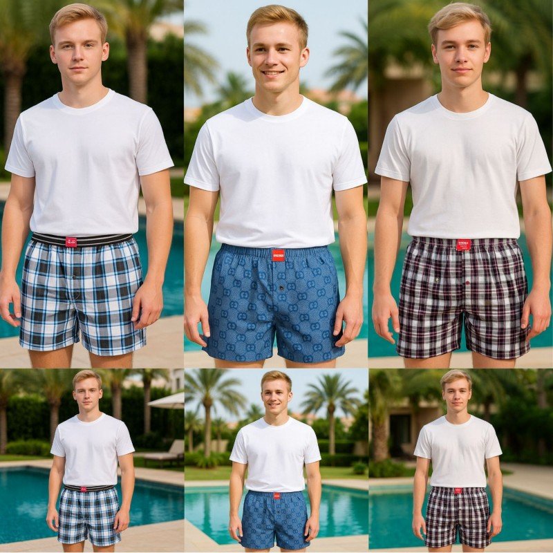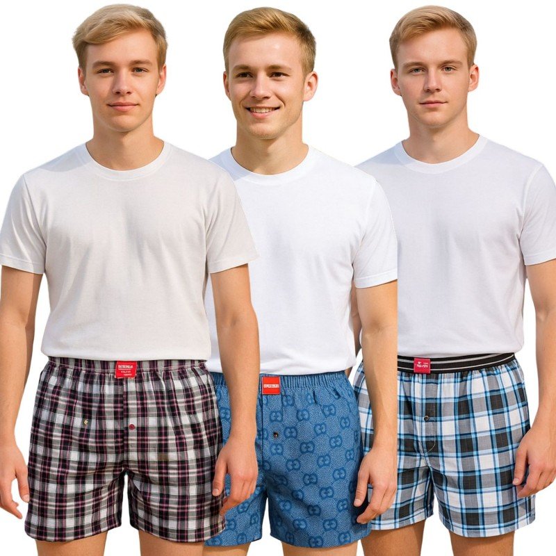 ارتاح بأناقة مع طقم البوكسر الرجالي المكوّن من 3 قطع بتصميم كلاسيكي أنيق بنقشة الكروهات. الخيار المثالي للرجال اللي بدهم راحة يومية وجودة عالية بلمسة من الذوق.
