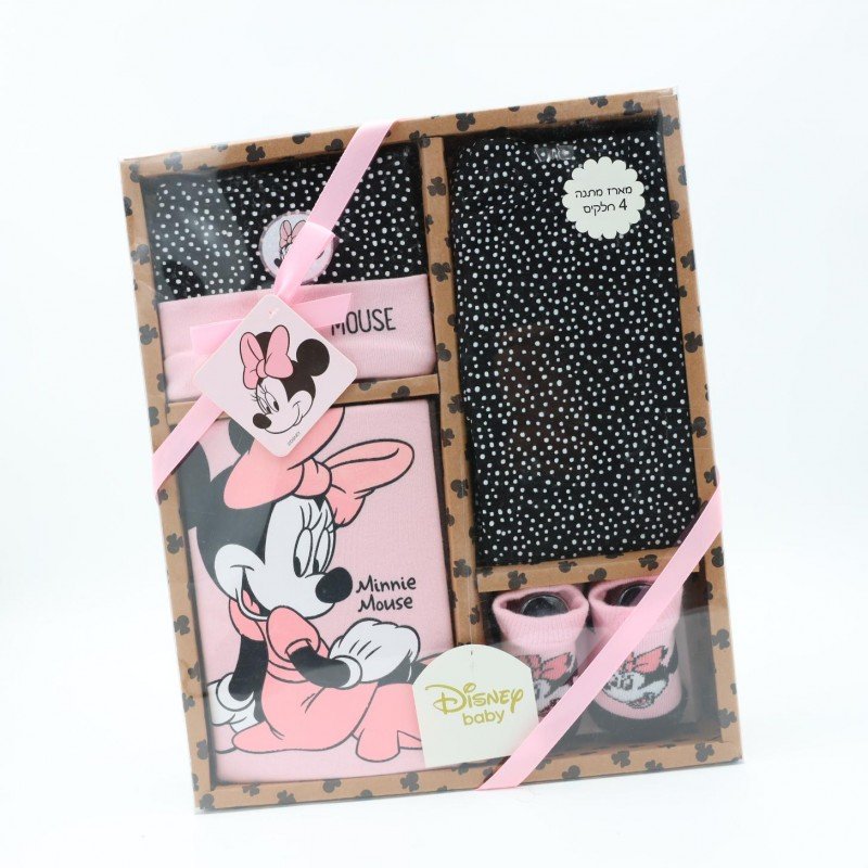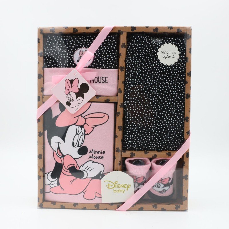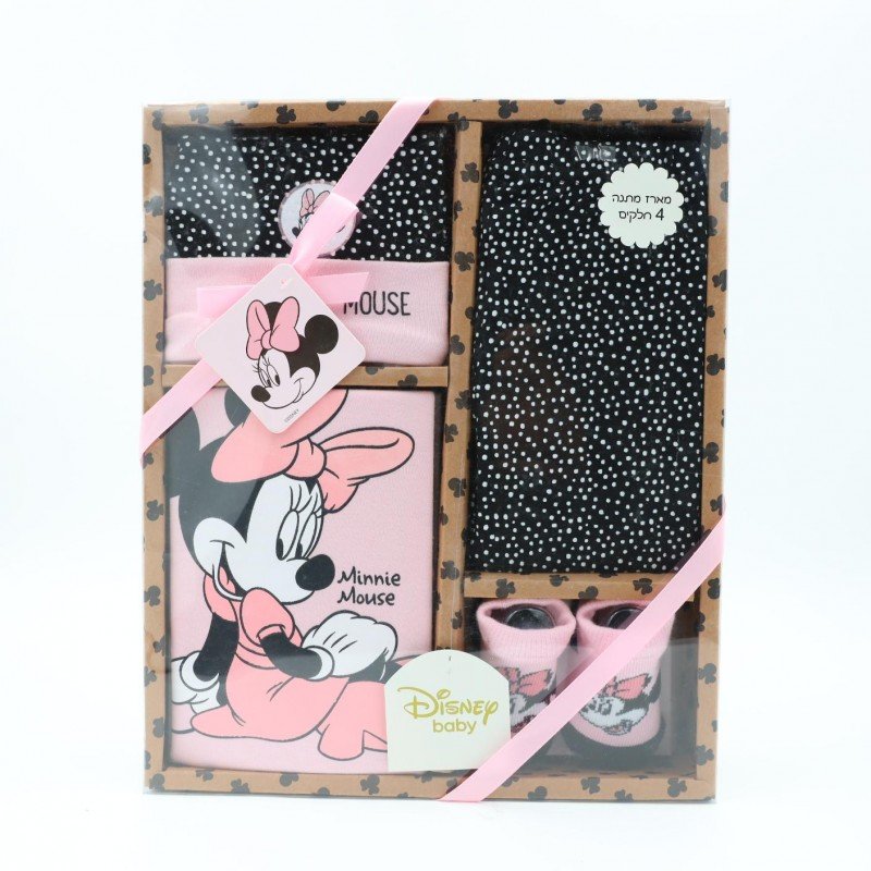 طقم متكامل لحديثي الولادة من ديزني يتكوّن من 4 قطع أساسية تشمل تبان، بنطلون، جرابات، وغطاء رأس. يتميز بتصميم أنيق برسمة ميني ماوس مع مزيج ألوان أسود وزهري يمنح مظهرًا عصريًا وناعمًا في الوقت نفسه. مصنوع من قماش ناعم ولطيف على بشرة الطفل الحساسة، ويوفر راحة ومرونة مناسبة للاستخدام اليومي. يعد خيارًا عمليًا ومناسبًا للمواليد الجدد، كما يصلح كهدية جميلة بلمسة ديزني محببة.