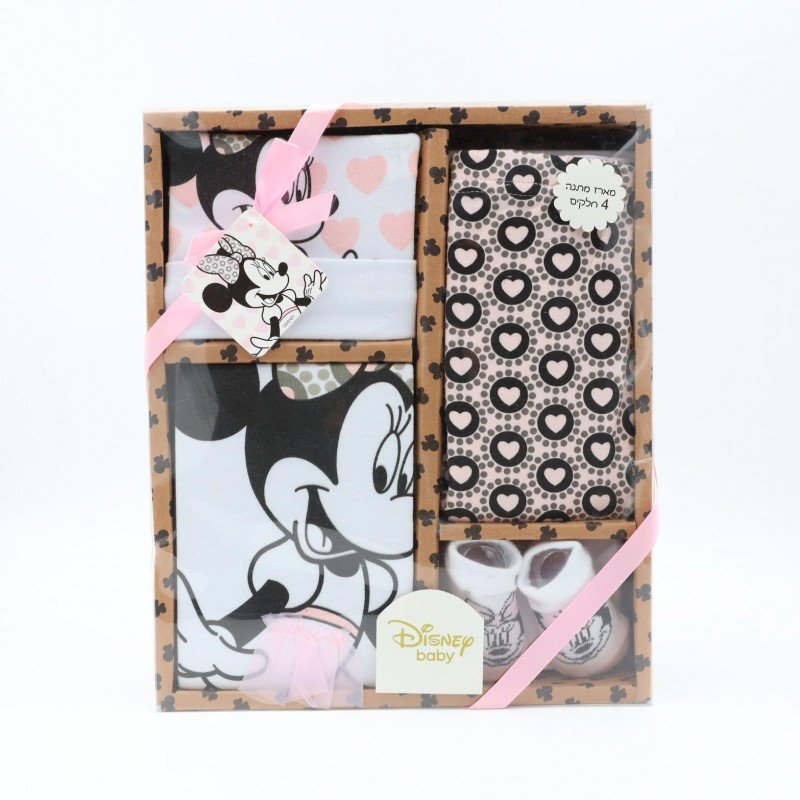 طقم بيبي لحديثي الولادة 4 قطع من ديزني – ميني ماوس لون أسود وزهري