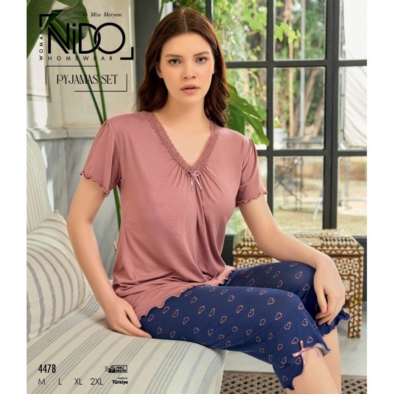 طقم بيجامة بيتية تيشيرت و برمودا زهري