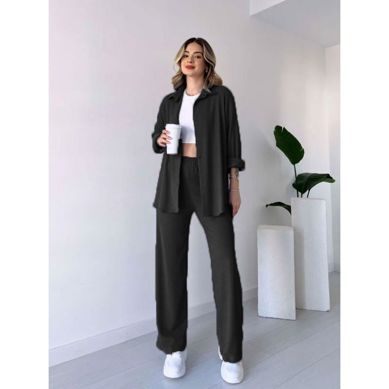 طقم تريندول مكون من قطعتين: قميص وبنطلون للنساء – لون أسود