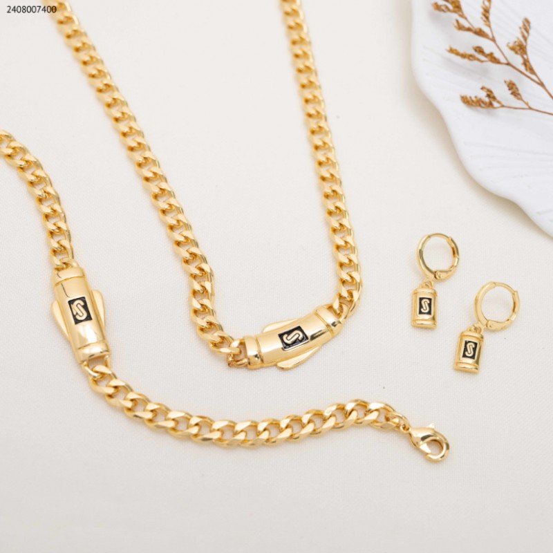 طقم جنزير – ماركة لون ذهبي كفالة سنتين ضد تغير اللون