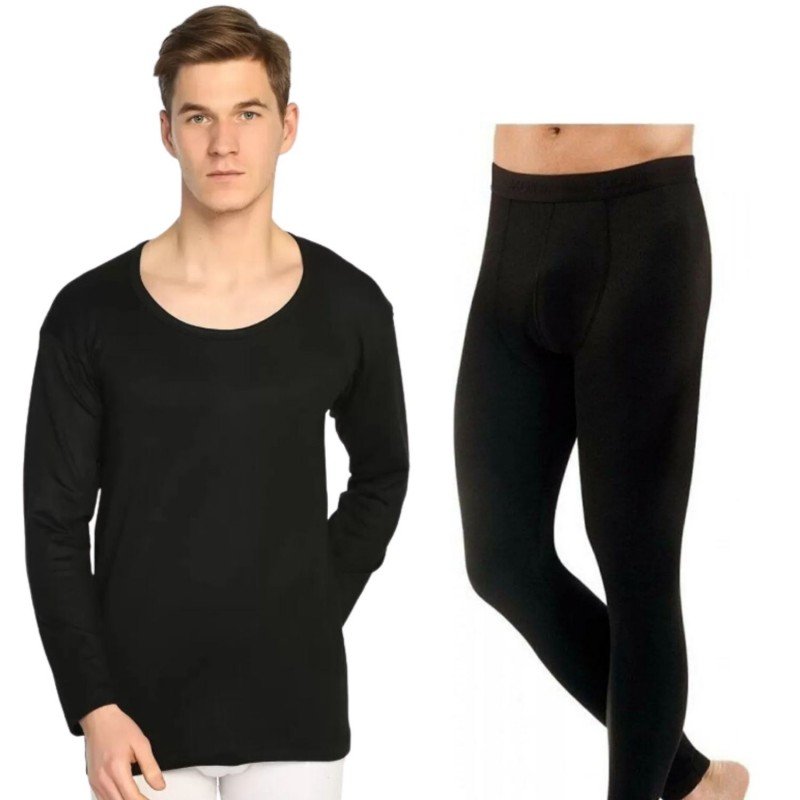 طقم داخلي رجالي (قطعتين بلوزه كم وبنطلون) للرجال لون أسود
