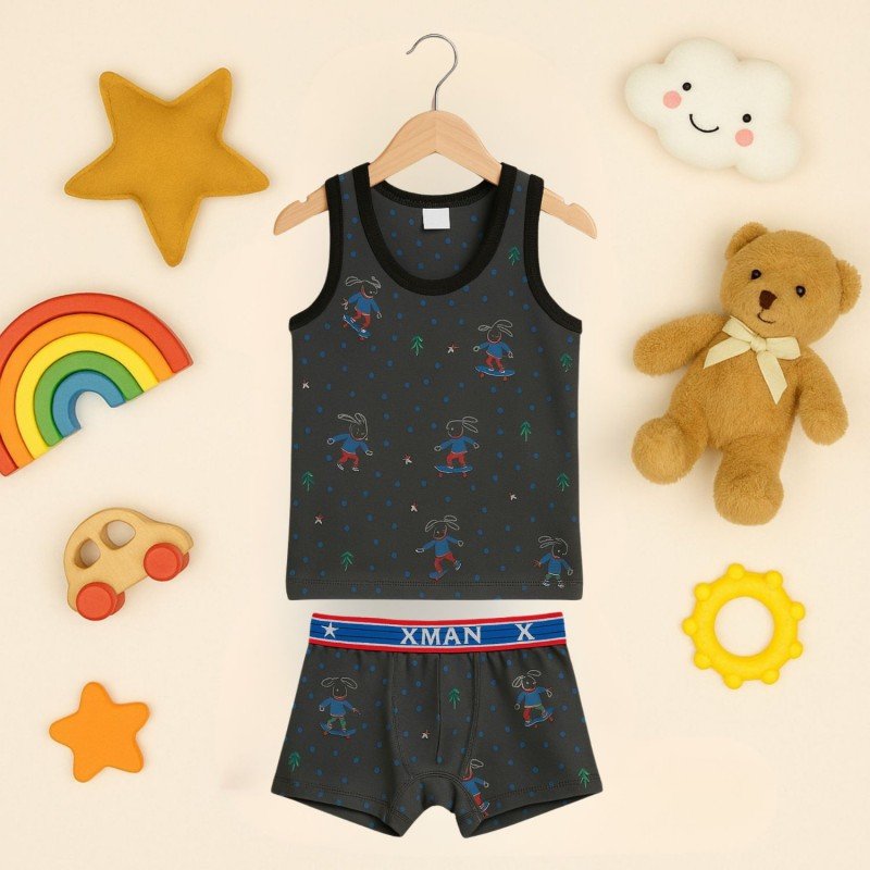 ✅ طقم داخلي ولادي (شباح + بوكسر) – لون رمادي