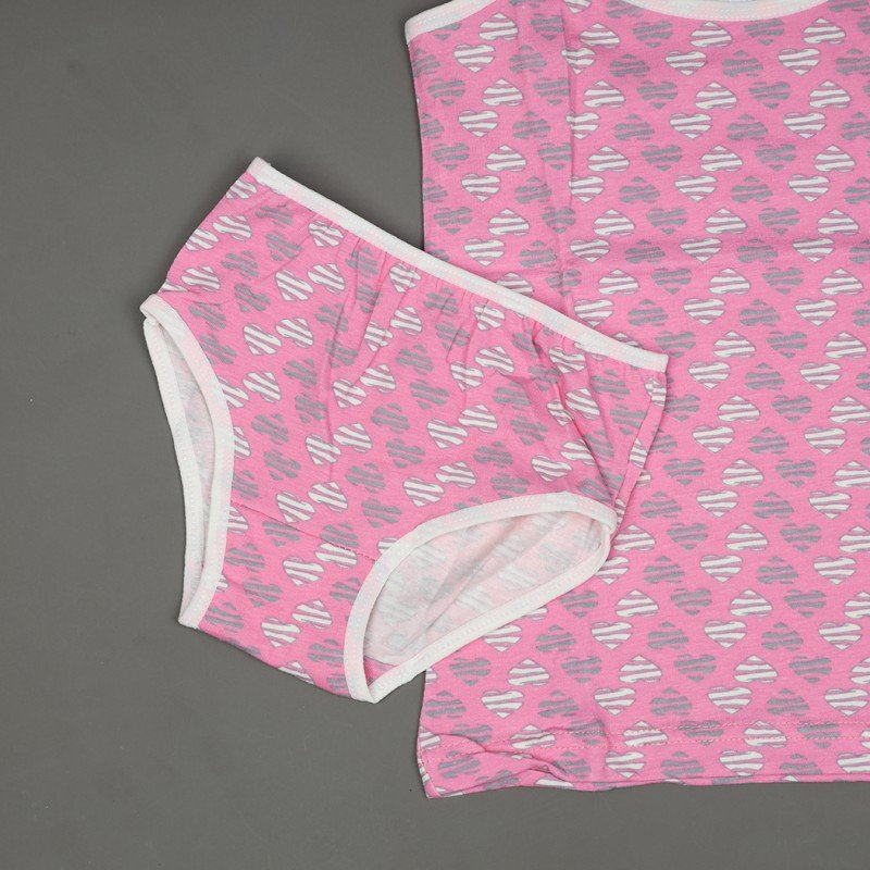 ✅ الفئة المستهدفة: الأطفال الذين يبحثون عن ملابس داخلية مريحة ومميزة.✅ التصميم: طقم داخلي مكون من قطعتين (شباح وكالوت) بتصميم مفعم بالأنوثة مع رسومات قلوب تضفي لمسة من البراءة والمرح.✅ اللون: زهري، لون مفعم بالأنوثة يناسب الأطفال ويضيف لمسة من الجمال على الملابس الداخلية.✅ المميزات: