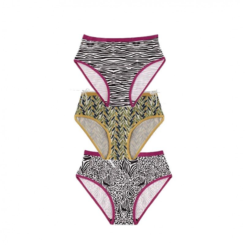 طقم داخلي نسائي قطني مُكون من 3 قطع بألوان متعددة