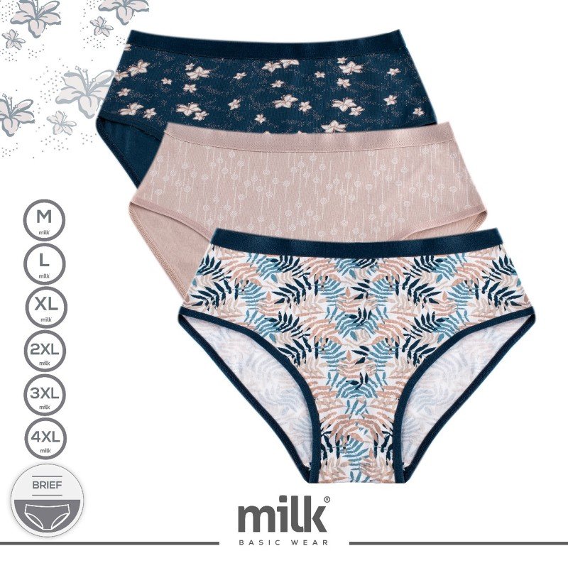 طقم داخلي نسائي قطن من 3 قطع milk بألوان مختلفة