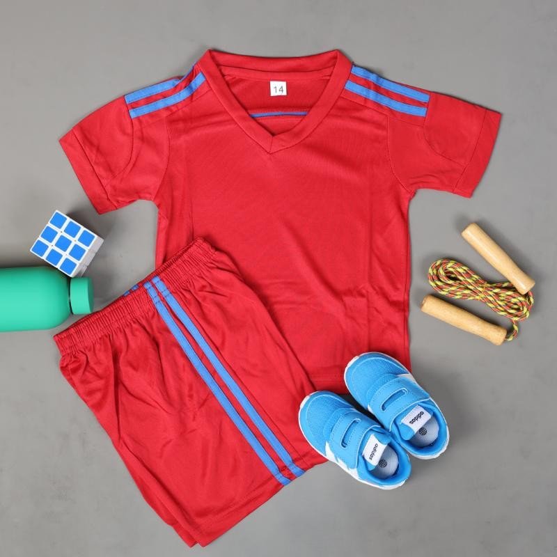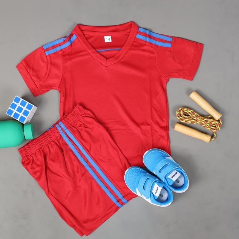 طقم رياضي (تيشيرت وشورت) للأطفال لون أحمر