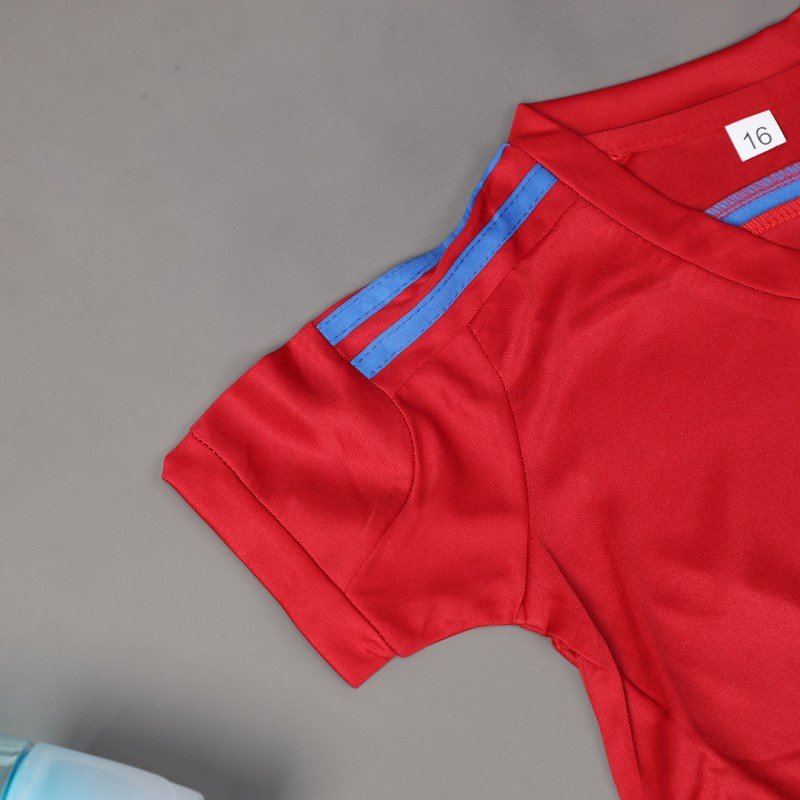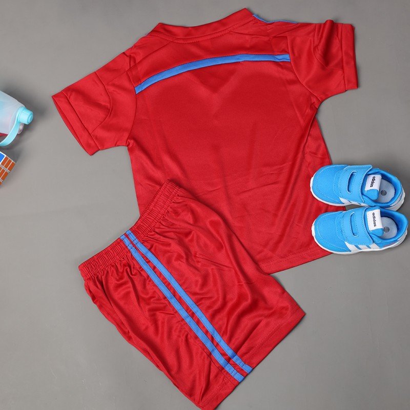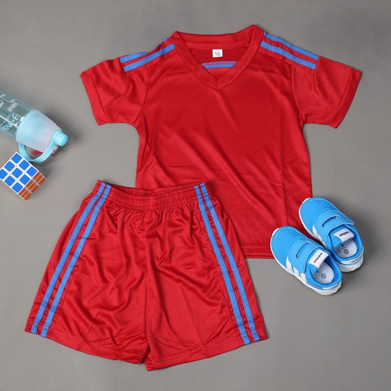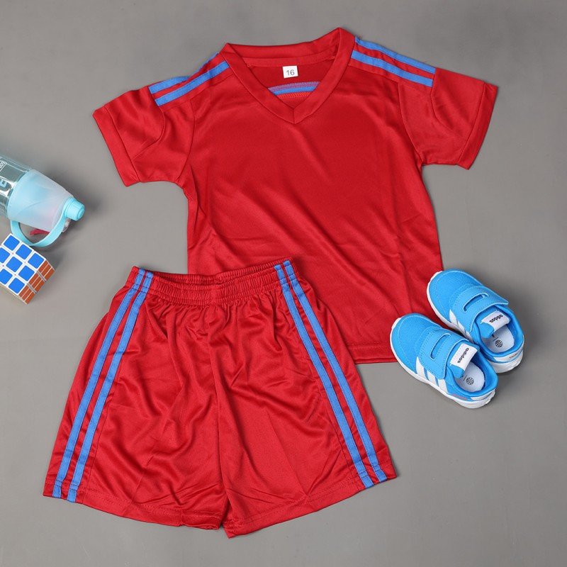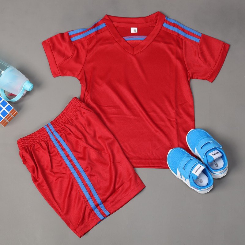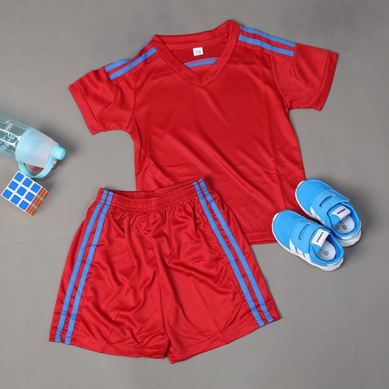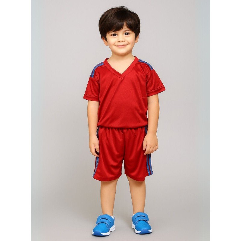 طقم رياضي (تيشيرت وشورت) للأطفال لون خمري وأصفر فسفوري