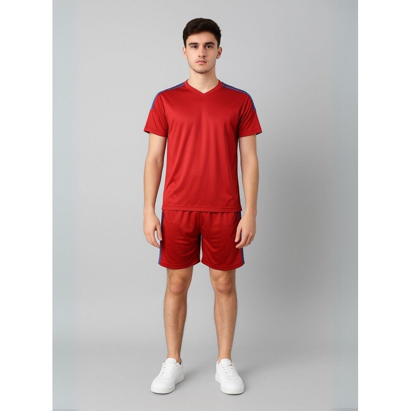 طقم رياضي (تيشيرت وشورت) للشباب لون أحمر وأزرق
