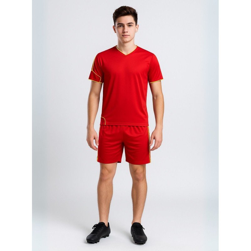 طقم رياضي (تيشيرت وشورت) للشباب لون أحمر وأصفر